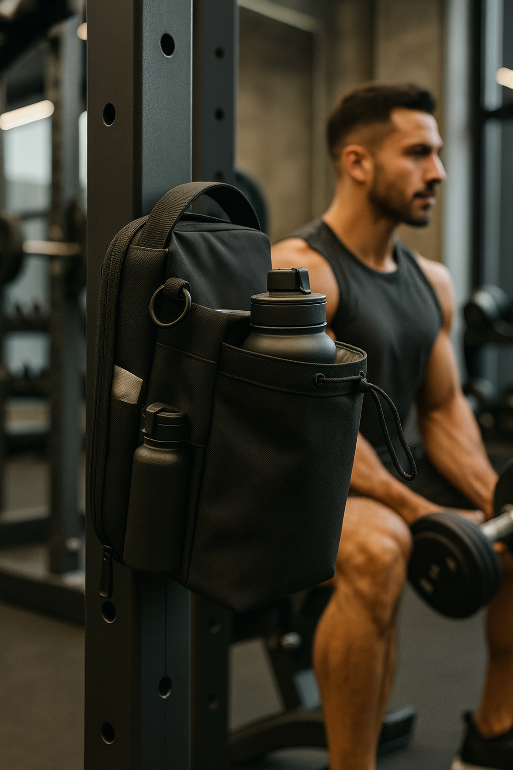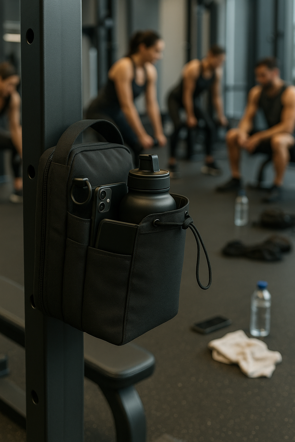 The Magnetic Water Bottle Bag attaches to your machine to keep everything within reach.